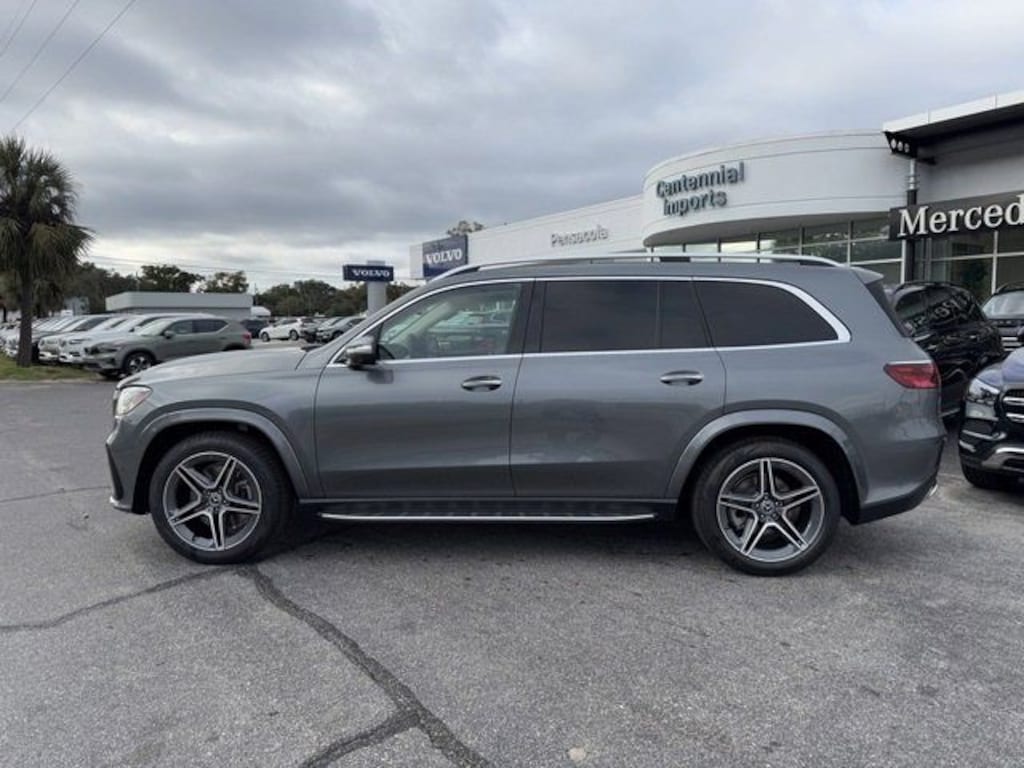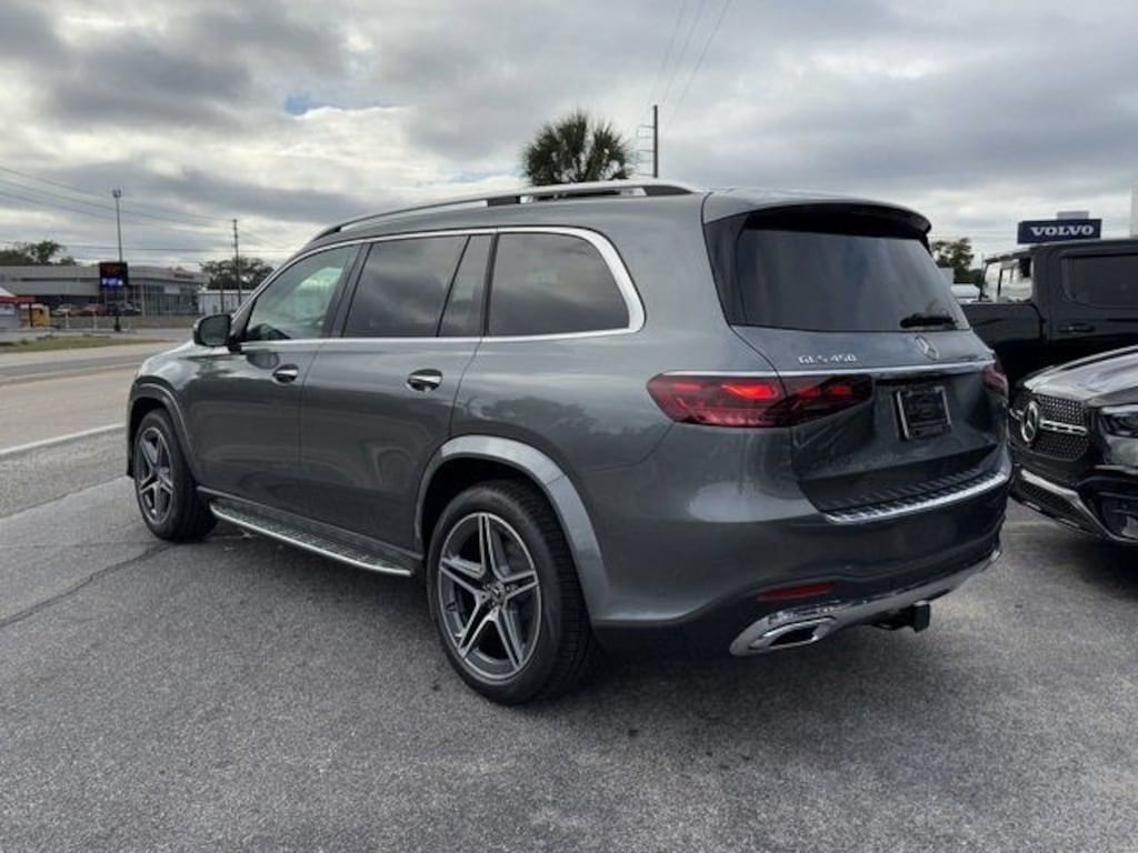 Grey 2025 Mercedes-Benz GLS GLS 450 4MATIC® 4MATIC® 9-Speed Automatic 3.0L I6 13 Speakers, 3rd row seats: split-bench, 4-Wheel Disc Brakes, 7-Seat Configuration, ABS brakes, Adaptive suspension, Air Conditioning, Alloy wheels, AM/FM radio: SiriusXM, Apple CarPlay®/Android Auto®, Auto High-beam Headlights, Auto tilt-away steering wheel, Auto-dimming door mirrors, Auto-dimming Rear-View mirror, Auto-leveling suspension, Automatic temperature control, Brake assist, Bumpers: body-color, Child-Seat-Sensing Airbag, Compass, Delay-off headlights, Driver door bin, Driver vanity mirror, Dual front impact airbags, Dual front side impact airbags, Electronic Stability Control, Emergency communication system: eCall Emergency System, Exterior Parking Camera Rear, Four wheel independent suspension, Front anti-roll bar, Front Bucket Seats, Front Center Armrest w/Storage, Front dual zone A/C, Front reading lights, Fully automatic headlights, Garage door transmitter: HomeLink, Head restraints memory, Heated and Ventilated Power Front Seats with Memory, Heated door mirrors, Heated front seats, Illuminated entry, Knee airbag, Leather steering wheel, Low tire pressure warning, MB-Tex Upholstery, Memory seat, Navigation system: MB Navigation, Occupant sensing airbag, Outside temperature display, Overhead airbag, Overhead console, Panic alarm, Passenger door bin, Passenger vanity mirror, Power adjustable front head restraints, Power door mirrors, Power driver seat, Power Liftgate, Power moonroof: Panorama, Power passenger seat, Power steering, Power windows, Premium audio system: MBUX, Radio: Burmester® Surround Sound System, Rain sensing wipers, Rear air conditioning, Rear anti-roll bar, Rear dual zone A/C, Rear fog lights, Rear reading lights, Rear seat center armrest, Rear window defroster, Rear window wiper, Reclining 3rd row seat, Remote keyless entry, Security system, Speed control, Speed-sensing steering, Speed-Sensitive Wipers, Split folding rear seat, Spoiler, Steering wheel memory, Steering wheel mounted audio controls, Tachometer, Telescoping steering wheel, Tilt steering wheel, Traction control, Trip computer, Turn signal indicator mirrors, Variably intermittent wipers, Ventilated front seats, Weather band radio, and Wheels: 21" Triple 5-Spoke.