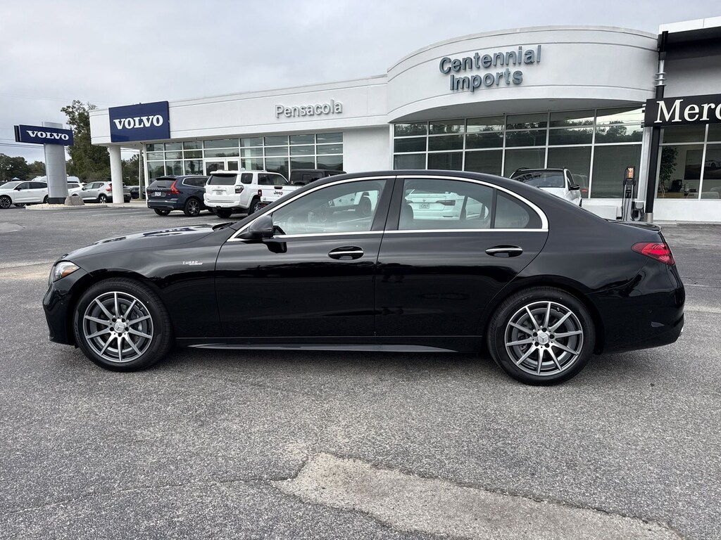 Black 2026 Mercedes-Benz C-Class C 43 AMG® 4MATIC® 4MATIC® 9-Speed Automatic I4 4MATIC®, 11.9" Center Touchscreen Display, 4-Wheel Disc Brakes, 5 Speakers, ABS brakes, Adaptive suspension, Air Conditioning, Alloy wheels, AM/FM radio, Apple CarPlay®/Android Auto®, Auto High-beam Headlights, Auto tilt-away steering wheel, Auto-dimming door mirrors, Auto-dimming Rear-View mirror, Automatic temperature control, Brake assist, Bumpers: body-color, Compass, Delay-off headlights, Driver door bin, Driver vanity mirror, Dual front impact airbags, Dual front side impact airbags, Electronic Stability Control, Emergency communication system: Mercedes-Benz Emergency Call Service, Exterior Parking Camera Rear, Four wheel independent suspension, Front anti-roll bar, Front Bucket Seats, Front Center Armrest, Front dual zone A/C, Front reading lights, Fully automatic headlights, Garage door transmitter: HomeLink, Genuine wood dashboard insert, Head restraints memory, Heated door mirrors, Heated front seats, Illuminated entry, Knee airbag, Leather steering wheel, Low tire pressure warning, MB-Tex/Microfiber Upholstery, Memory seat, Occupant sensing airbag, Outside temperature display, Overhead airbag, Overhead console, Panic alarm, Passenger door bin, Passenger vanity mirror, Power adjustable front head restraints, Power door mirrors, Power driver seat, Power Heated Front Seats with Memory, Power moonroof, Power passenger seat, Power steering, Power windows, Premium audio system: MBUX, Radio data system, Radio: FrontBass 5-Speaker Audio System, Rain sensing wipers, Rear anti-roll bar, Rear fog lights, Rear reading lights, Rear seat center armrest, Rear window defroster, Remote keyless entry, Security system, Speed control, Speed-sensing steering, Split folding rear seat, Spoiler, Sport steering wheel, Steering wheel memory, Steering wheel mounted audio controls, Tachometer, Telescoping steering wheel, Tilt steering wheel, Traction control, Trip computer, Turn signal indicator mirrors, Variably intermittent wipers, Weather band radio, and Wheels: 18" x 8.0J AMG® 10-Spoke. 4MATIC®.