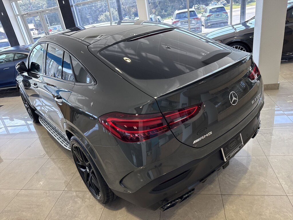 Gray 2026 Mercedes-Benz GLE GLE 63 S AMG® 4MATIC® 4MATIC® 9-Speed Automatic 4.0L V8 13 Speakers, 4-Wheel Disc Brakes, ABS brakes, Adaptive suspension, Air Conditioning, Alloy wheels, AM/FM radio: SiriusXM, Anti-whiplash front head restraints, Apple CarPlay®/Android Auto®, Auto High-beam Headlights, Auto tilt-away steering wheel, Auto-dimming door mirrors, Auto-dimming Rear-View mirror, Auto-leveling suspension, Automatic temperature control, Brake assist, Brushed Aluminum Trim, Bumpers: body-color, Child-Seat-Sensing Airbag, Compass, Delay-off headlights, Driver door bin, Driver vanity mirror, Dual front impact airbags, Dual front side impact airbags, Electronic Stability Control, Emergency communication system: eCall Emergency System, Exclusive Nappa Leather Upholstery, Exterior Parking Camera Rear, Four wheel independent suspension, Front anti-roll bar, Front Bucket Seats, Front Center Armrest, Front dual zone A/C, Front reading lights, Fully automatic headlights, Garage door transmitter: HomeLink, Heads-Up Display, Heated and Ventilated Power Front Seats with Driver Memory, Heated door mirrors, Heated front seats, Heated steering wheel, High Performance Tires, Illuminated entry, Knee airbag, Low tire pressure warning, Memory seat, Nappa Leather Dashboard and Door Panels, Navigation system: MBUX, Occupant sensing airbag, Outside temperature display, Overhead airbag, Panic alarm, Passenger door bin, Passenger vanity mirror, Power adjustable front head restraints, Power door mirrors, Power driver seat, Power Liftgate, Power moonroof: Panorama, Power passenger seat, Power steering, Power windows, Premium audio system: MBUX, Radio data system, Radio: 12.3" Media Display with Touchscreen, Rain sensing wipers, Rapid Heating Front Seats, Rear anti-roll bar, Rear fog lights, Rear reading lights, Rear seat center armrest, Rear window defroster, Remote keyless entry, Security system, Speed control, Speed-sensing steering, Speed-Sensitive Wipers, Split folding rear seat, Spoiler, Sport steering wheel, Steering wheel memory, Steering wheel mounted audio controls, Tachometer, Telescoping steering wheel, Tilt steering wheel, Traction control, Trip computer, Turn signal indicator mirrors, Ventilated front seats, Weather band radio, and Wheels: 22" AMG® Multispoke.