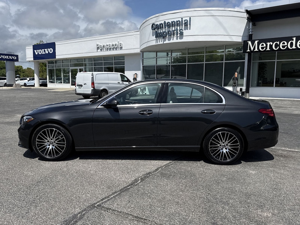 Gray 2026 Mercedes-Benz C-Class C 300 RWD 9-Speed Automatic 2.0L I4 Turbocharged 11.9" Center Touchscreen Display, 4-Wheel Disc Brakes, 5 Speakers, ABS brakes, Air Conditioning, Alloy wheels, AM/FM radio: SiriusXM, Anti-whiplash front head restraints, Apple CarPlay®/Android Auto®, Auto High-beam Headlights, Auto tilt-away steering wheel, Auto-dimming door mirrors, Auto-dimming Rear-View mirror, Automatic temperature control, Brake assist, Bumpers: body-color, Child-Seat-Sensing Airbag, Compass, Delay-off headlights, Driver door bin, Driver vanity mirror, Dual front impact airbags, Dual front side impact airbags, Electronic Stability Control, Emergency communication system: Mercedes-Benz Emergency Call Service, Exterior Parking Camera Rear, Four wheel independent suspension, Front anti-roll bar, Front Bucket Seats, Front Center Armrest, Front dual zone A/C, Front reading lights, Fully automatic headlights, Garage door transmitter: HomeLink, Genuine wood dashboard insert, Head restraints memory, Heated door mirrors, Heated front seats, Illuminated entry, Knee airbag, Leather steering wheel, Low tire pressure warning, MB-Tex Upholstery, Memory seat, Occupant sensing airbag, Outside temperature display, Overhead airbag, Overhead console, Panic alarm, Passenger door bin, Passenger vanity mirror, Power adjustable front head restraints, Power door mirrors, Power driver seat, Power Heated Front Seats with Memory, Power moonroof, Power passenger seat, Power steering, Power windows, Premium audio system: MBUX, Radio data system, Radio: FrontBass 5-Speaker Audio System, Rain sensing wipers, Rear anti-roll bar, Rear fog lights, Rear reading lights, Rear seat center armrest, Rear window defroster, Remote keyless entry, Security system, SiriusXM Satellite Radio, Speed control, Speed-sensing steering, Split folding rear seat, Steering wheel memory, Steering wheel mounted audio controls, Tachometer, Telescoping steering wheel, Tilt steering wheel, Traction control, Trip computer, Turn signal indicator mirrors, Variably intermittent wipers, Weather band radio, and Wheels: 7.5J x 18" Front and 8.5J x 18" Rear 5-Spoke.