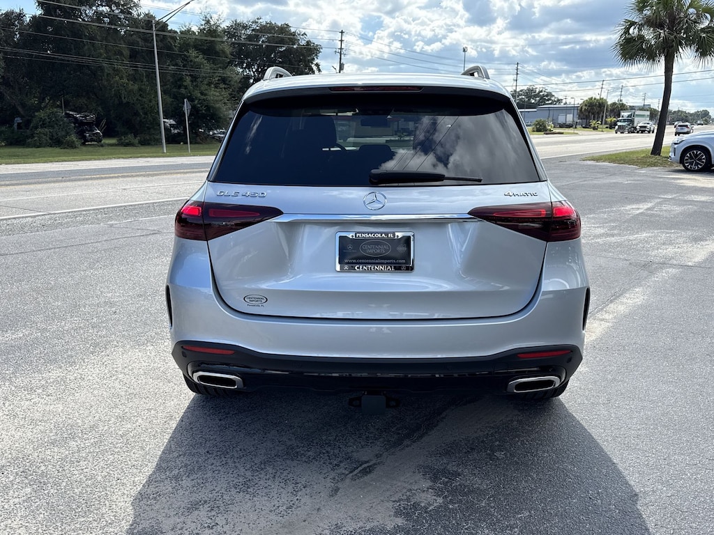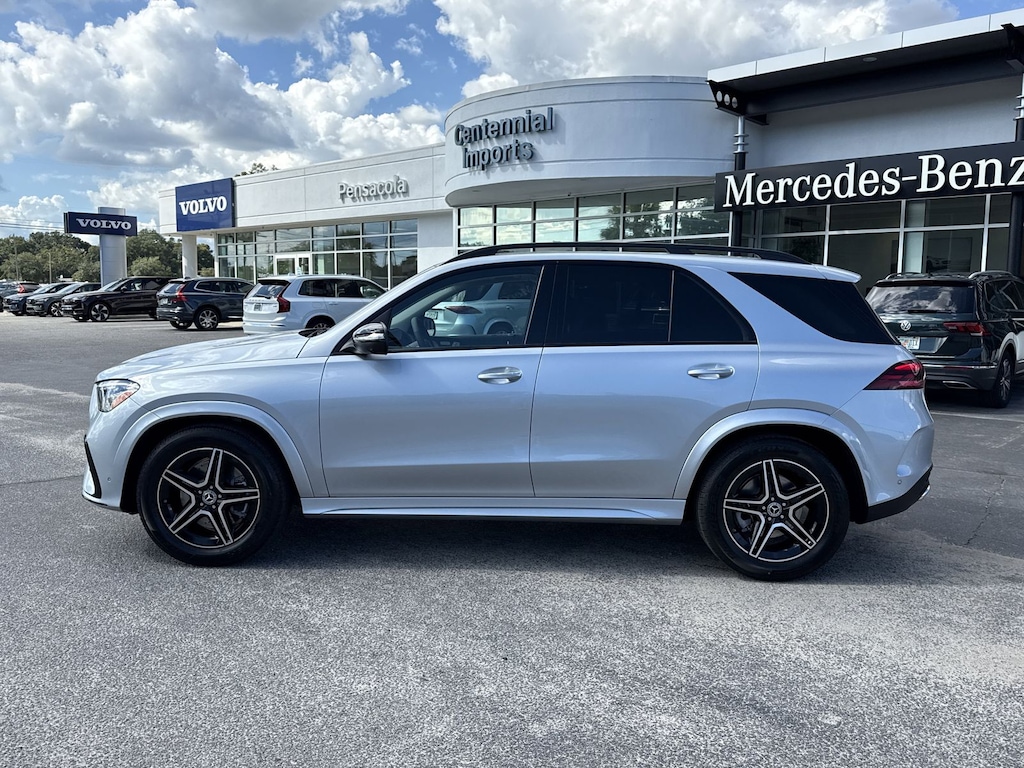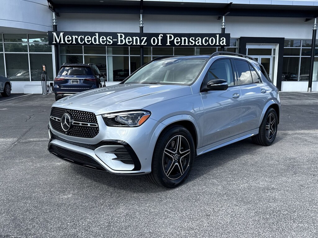 Silver 2026 Mercedes-Benz GLE GLE 450 4MATIC® 4MATIC® 9-Speed Automatic 3.0L I6 Turbo 20" AMG® Twin 5-Spoke Wheels, 4-Wheel Disc Brakes, 8 Speakers, ABS brakes, Air Conditioning, Alloy wheels, AM/FM radio: SiriusXM, Anti-whiplash front head restraints, Apple CarPlay®/Android Auto®, Auto High-beam Headlights, Auto tilt-away steering wheel, Auto-dimming door mirrors, Auto-dimming Rear-View mirror, Automatic temperature control, Brake assist, Bumpers: body-color, Compass, Delay-off headlights, Driver door bin, Driver vanity mirror, Dual front impact airbags, Dual front side impact airbags, Electronic Stability Control, Emergency communication system: eCall Emergency System, Exterior Parking Camera Rear, Four wheel independent suspension, Front anti-roll bar, Front Bucket Seats, Front Center Armrest, Front dual zone A/C, Front reading lights, Fully automatic headlights, Garage door transmitter: HomeLink, Heated door mirrors, Heated Front Seats, Heated front seats, HERMES Communications Module LTE, Illuminated entry, Knee airbag, Leather steering wheel, Low tire pressure warning, MB Navigation, MB-Tex Seat Trim, Memory seat, Navigation system: MBUX, Occupant sensing airbag, Outside temperature display, Overhead airbag, Panic alarm, Passenger door bin, Passenger vanity mirror, Power adjustable front head restraints, Power door mirrors, Power driver seat, Power Front Seats, Power Liftgate, Power moonroof, Power passenger seat, Power steering, Power windows, Premium audio system: MBUX, Radio data system, Radio: 12.3" Media Display with Touchscreen, Rain sensing wipers, Rear anti-roll bar, Rear fog lights, Rear reading lights, Rear seat center armrest, Rear window defroster, Rear window wiper, Remote keyless entry, Security system, SiriusXM Satellite Radio, Speed control, Speed-sensing steering, Speed-Sensitive Wipers, Split folding rear seat, Spoiler, Steering wheel memory, Steering wheel mounted audio controls, Tachometer, Telescoping steering wheel, Tilt steering wheel, Traction control, Trip computer, Turn signal indicator mirrors, Weather band radio, Wireless Charging, and Wireless Smartphone Integration.