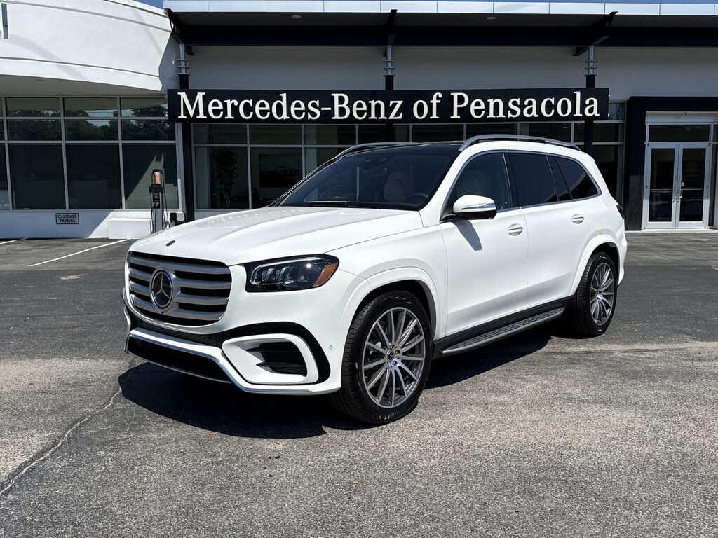 White 2026 Mercedes-Benz GLS GLS 580 4MATIC® 4MATIC® 9-Speed Automatic 4.0L V8 13 Speakers, 3rd row seats: split-bench, 4-Wheel Disc Brakes, 7-Seat Configuration, ABS brakes, Active Multicontour Power Front Seats with Massage, Adaptive suspension, Air Conditioning, Alloy wheels, AM/FM radio: SiriusXM, Apple CarPlay®/Android Auto®, Auto High-beam Headlights, Auto tilt-away steering wheel, Auto-dimming door mirrors, Auto-dimming Rear-View mirror, Auto-leveling suspension, Automatic temperature control, Brake assist, Bumpers: body-color, Child-Seat-Sensing Airbag, Compass, Delay-off headlights, Driver door bin, Driver vanity mirror, Dual front impact airbags, Dual front side impact airbags, Electronic Stability Control, Emergency communication system: eCall Emergency System, Exterior Parking Camera Rear, Four wheel independent suspension, Front anti-roll bar, Front Bucket Seats, Front Center Armrest w/Storage, Front dual zone A/C, Front reading lights, Fully automatic headlights, Garage door transmitter: HomeLink, Head restraints memory, Heated door mirrors, Heated front seats, Heated rear seats, Heated steering wheel, Illuminated entry, Illuminated running boards, Knee airbag, Leather steering wheel, Leather Upholstery, Low tire pressure warning, Memory seat, Navigation system: MB Navigation, Occupant sensing airbag, Outside temperature display, Overhead airbag, Overhead console, Panic alarm, Passenger door bin, Passenger vanity mirror, Power adjustable front head restraints, Power door mirrors, Power driver seat, Power Liftgate, Power moonroof: Panorama, Power passenger seat, Power steering, Power windows, Premium audio system: MBUX, Radio: Burmester® Surround Sound System, Rain sensing wipers, Rear air conditioning, Rear anti-roll bar, Rear dual zone A/C, Rear fog lights, Rear reading lights, Rear seat center armrest, Rear window defroster, Rear window wiper, Reclining 3rd row seat, Remote keyless entry, Security system, Speed control, Speed-sensing steering, Speed-Sensitive Wipers, Split folding rear seat, Spoiler, Steering wheel memory, Steering wheel mounted audio controls, Tachometer, Telescoping steering wheel, Tilt steering wheel, Traction control, Trip computer, Turn signal indicator mirrors, Variably intermittent wipers, Ventilated front seats, Weather band radio, and Wheels: 22" AMG® Multi-Spoke.