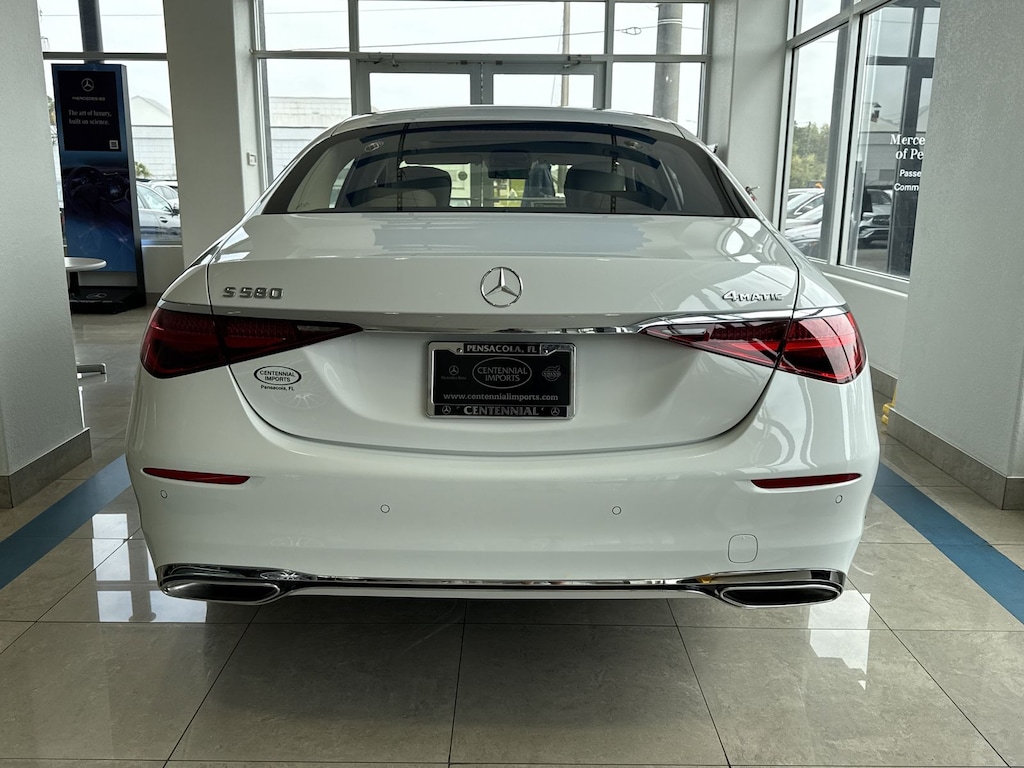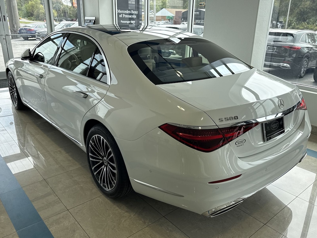 White 2026 Mercedes-Benz S-Class S 580 4MATIC® 4MATIC® 9-Speed Automatic 4.0L V8 4.0L V8, 4MATIC®, Beige Leather, 15 Speakers, 4-Wheel Disc Brakes, ABS brakes, Adaptive suspension, Air Conditioning, Alloy wheels, AM/FM radio: SiriusXM, Apple CarPlay®/Android Auto®, Audio memory, Auto High-beam Headlights, Auto tilt-away steering wheel, Auto-dimming door mirrors, Auto-dimming Rear-View mirror, Auto-leveling suspension, Automatic temperature control, Brake assist, Bumpers: body-color, Burmester® 3D Surround Sound System, Child-Seat-Sensing Airbag, Compass, Delay-off headlights, Driver door bin, Driver vanity mirror, Dual front impact airbags, Dual front side impact airbags, Electronic Stability Control, Emergency communication system: eCall Emergency System, Exterior Parking Camera Rear, Four wheel independent suspension, Front anti-roll bar, Front Bucket Seats, Front Center Armrest, Front dual zone A/C, Front reading lights, Garage door transmitter: HomeLink, Genuine wood dashboard insert, Genuine wood door panel insert, Head restraints memory, Heated door mirrors, Heated front seats, Heated Steering Wheel, Heated steering wheel, HVAC memory, Illuminated entry, Knee airbag, Leather steering wheel, Low tire pressure warning, MANUFAKTUR Leather Upholstery, Memory seat, Navigation System, Occupant sensing airbag, Outside temperature display, Overhead airbag, Overhead console, Panic alarm, Passenger door bin, Passenger vanity mirror, Power adjustable front head restraints, Power adjustable rear head restraints, Power door mirrors, Power driver seat, Power moonroof: Panorama, Power passenger seat, Power steering, Power windows, Powered Rapid-Heated and Ventilated Front Seats, Premium audio system: MBUX, Radio data system, Radio: MBUX with Navigation, Rain sensing wipers, Rear anti-roll bar, Rear fog lights, Rear reading lights, Rear seat center armrest, Rear side impact airbag, Rear Window Blind, Rear window defroster, Remote keyless entry, Security system, Speed control, Speed-sensing steering, Speed-Sensitive Wipers, Steering wheel memory, Steering wheel mounted audio controls, Tachometer, Telescoping steering wheel, Tilt steering wheel, Traction control, Trip computer, Turn signal indicator mirrors, Variably intermittent wipers, Ventilated front seats, and Wheels: 19" 5-Twin Spoke. 4.0L V8, 4MATIC®, Beige Leather.