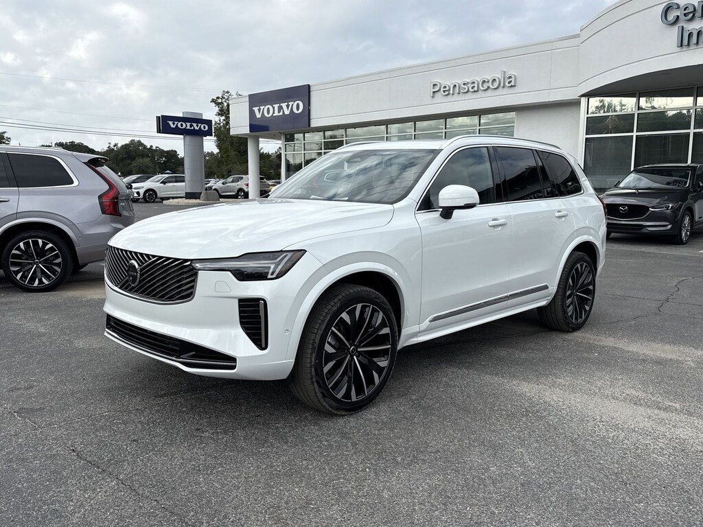 Crystal White Pearl 2026 Volvo XC90 B5 Plus AWD Automatic with Geartronic 2.0L I4 Turbocharged DOHC 16V LEV3-ULEV70 Protection Package (All-Weather Floor Mats and Cargo Tray), AWD, Cardamom Premium Synthetic, 10 Speakers, 3rd row seats: bucket, 4-Wheel Disc Brakes, ABS brakes, Air Conditioning, Alloy wheels, AM/FM radio: SiriusXM, Anti-whiplash front head restraints, Apple CarPlay, Auto High-beam Headlights, Auto-dimming door mirrors, Auto-dimming Rear-View mirror, Automatic temperature control, Brake assist, Bumpers: body-color, Delay-off headlights, Driver door bin, Driver vanity mirror, Dual front impact airbags, Dual front side impact airbags, Electronic Stability Control, Emergency communication system: Volvo Car Connect Plus (4-Year Subscription), Exterior Parking Camera Rear, Four wheel independent suspension, Front anti-roll bar, Front Bucket Seats, Front Center Armrest w/Storage, Front dual zone A/C, Front reading lights, Fully automatic headlights, Garage door transmitter: HomeLink, Genuine wood dashboard insert, Genuine wood door panel insert, Headlight cleaning, Heated door mirrors, Heated Front Bucket Seats, Heated front seats, Heated rear seats, Heated steering wheel, Illuminated entry, Integrated rear child seats, Knee airbag, Low tire pressure warning, Memory seat, Navigation System, Nordico Upholstery, Occupant sensing airbag, Outside temperature display, Overhead airbag, Panic alarm, Passenger door bin, Passenger vanity mirror, Power door mirrors, Power driver seat, Power Liftgate, Power moonroof, Power passenger seat, Power steering, Power windows, Radio data system, Radio: High Performance Audio System, Rain sensing wipers, Rear air conditioning, Rear anti-roll bar, Rear dual zone A/C, Rear fog lights, Rear reading lights, Rear window defroster, Rear window wiper, Remote keyless entry, Security system, Speed control, Speed-sensing steering, Split folding rear seat, Spoiler, Steering wheel mounted audio controls, Tachometer, Telescoping steering wheel, Traction control, Trip computer, Turn signal indicator mirrors, Variably intermittent wipers, and Wheels: 21" 5-Multi Spoke Black Diamond Cut Alloy. AWD, Cardamom Premium Synthetic.