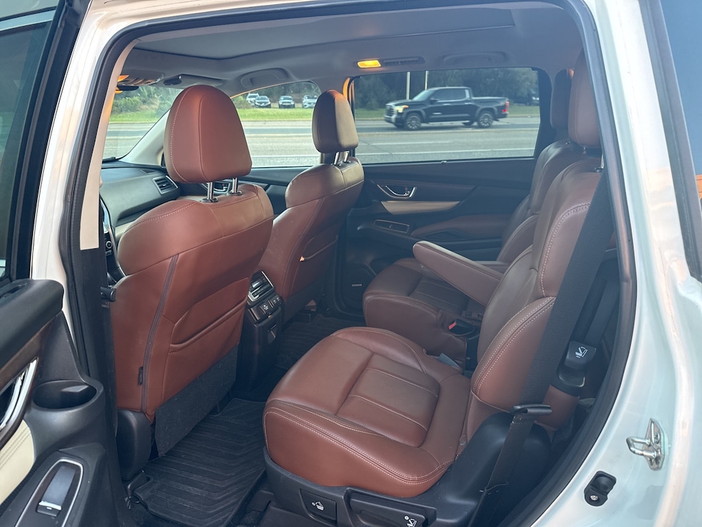 14 Speakers, 20" Alloy Wheels, 3rd row seats: bench, 4-Wheel Disc Brakes, ABS brakes, Air Conditioning, Alloy wheels, AM/FM radio: SiriusXM, Auto High-beam Headlights, Auto-dimming Rear-View mirror, Automatic temperature control, Axle Ratio: 4.44, Brake assist, Bumpers: body-color, CD player, Compass, Delay-off headlights, Driver door bin, Driver vanity mirror, Dual front impact airbags, Dual front side impact airbags, Electronic Stability Control, Emergency communication system: STARLINK Safety and Security, Exterior Parking Camera Rear, Four wheel independent suspension, Front anti-roll bar, Front Bucket Seats, Front Center Armrest, Front dual zone A/C, Front fog lights, Front reading lights, Fully automatic headlights, Garage door transmitter: HomeLink, harman/kardon® Speakers, Heated & Ventilated Front Bucket Seats, Heated door mirrors, Heated front seats, Heated rear seats, Heated steering wheel, Illuminated entry, Knee airbag, Low tire pressure warning, Memory seat, Navigation System, Occupant sensing airbag, Outside temperature display, Overhead airbag, Overhead console, Panic alarm, Passenger door bin, Passenger vanity mirror, Perforated Leather-Trimmed Upholstery, Power door mirrors, Power driver seat, Power Liftgate, Power moonroof, Power passenger seat, Power steering, Power windows, Radio data system, Radio: Subaru STARLINK 8.0" Multimedia Nav System, Rain sensing wipers, Rear air conditioning, Rear anti-roll bar, Rear reading lights, Rear window defroster, Rear window wiper, Remote keyless entry, Roof rack: rails only, Security system, Speed control, Split folding rear seat, Spoiler, STARLINK/Apple CarPlay/Android Auto, Steering wheel mounted audio controls, Tachometer, Telescoping steering wheel, Tilt steering wheel, Traction control, Trip computer, Turn signal indicator mirrors, Variably intermittent wipers, and Ventilated front seats. Recent Arrival! 20/26 City/Highway MPG